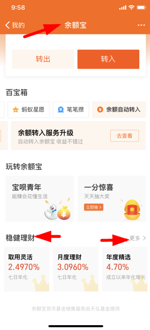 【3】选择稳健理财右侧的【更多】,即可进入产品专区;