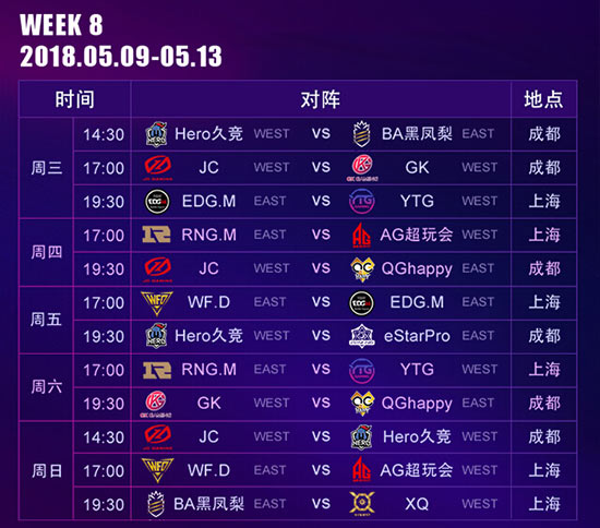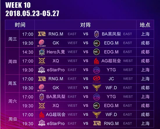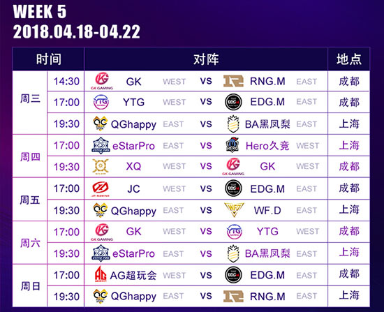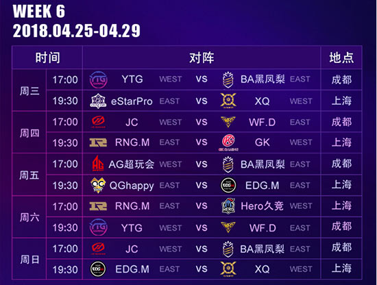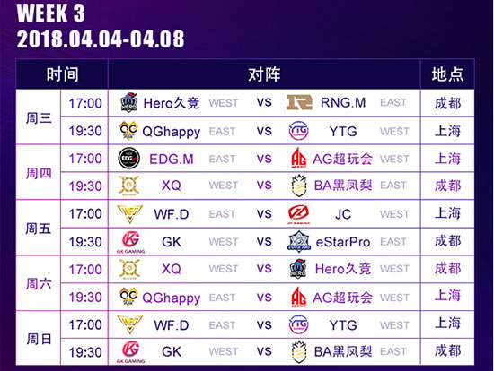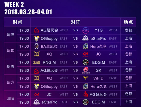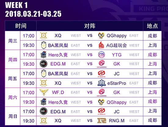 KPL春季赛赛程表: