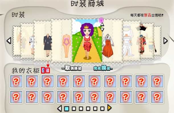 七、衣柜里的衣服是按一定顺序排列的,要找到你刚刚购买的服装,可以点击小三角图标。