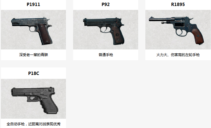 绝地求生刺激战场手枪介绍: