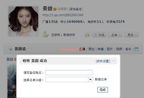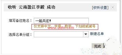 如果你觉得每收听一个人就弹出一个收听设置有点烦,不用怕,只要在微博“其他设置”选项里找到“收听设置”,取消收听成功后弹出设置名单分组提醒即可啦。