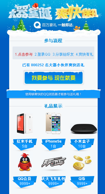 QQ浏览器大器圣诞活动 分享给好友抽奖赢iPhone5s和天天飞车礼包