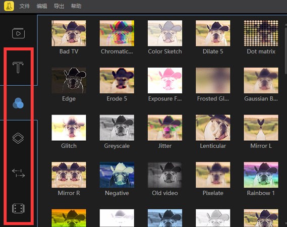 为了能更方便视频小白的上手,我们在素材库里为你提供了丰富多样的设计样式,你的视频可以搭配不同风格的滤镜,添加流畅自然的转场效果,套上有趣的叠附特效,为每一帧添加动画,只需的右键点击素材,选择“添加到轨道”即可完成操作,大片制作就这么简单!