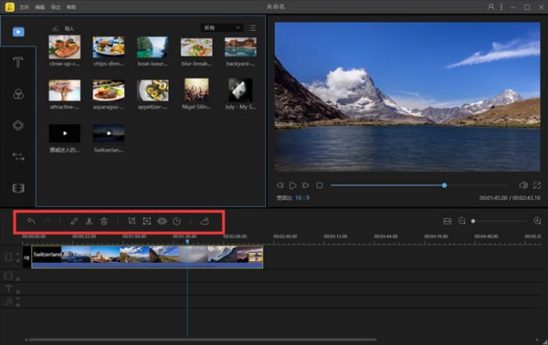 当我们想快速分割、裁剪、缩放、添加马赛克和丢弃视频片段时,将分割轴拖动到你想编辑的节点,点击工具栏上对应的小按钮即可完成操作,此外,我们还提供了不少快捷键可以让你的效率大大提高。