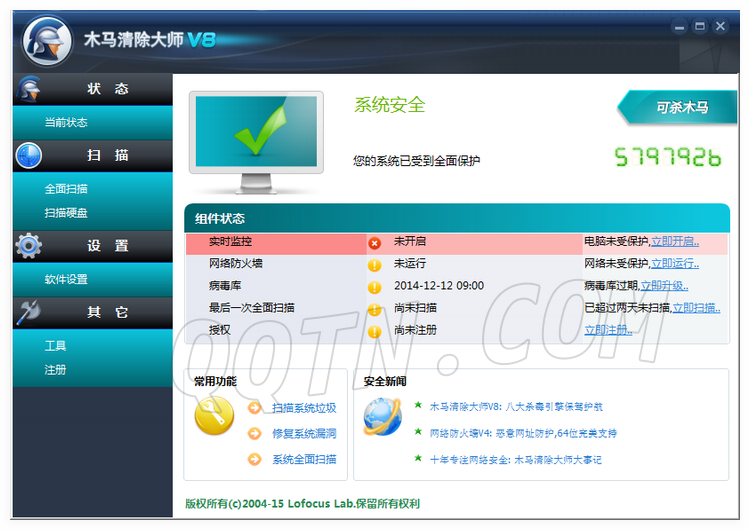 木马清除大师V8是木马清除大师系列的一个革命性的的更新, 完全重写了引擎和主动防御, 三大新查毒引擎使得V8查杀病毒的能力大大增加。主动防御已经和64位操作系统无缝结合, 是防范未知病毒的利器。