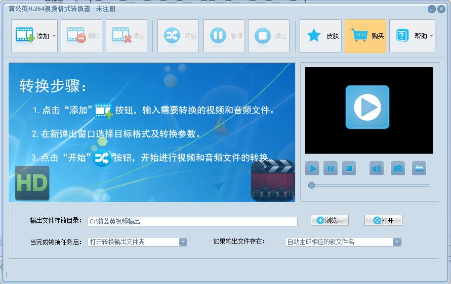 蒲公英H.264可以将各种常用的视频格式转换为HD高清H.264编码视频。当然软件同样可以将您下载的H.264编码的AVI视频、H.264编码的MKV、H.264编码的MP4视频等等视频格式转换为我们常用的视频格式。