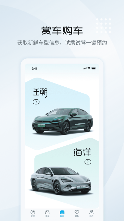 app苹果版是专为iPhone手机用户制作,软件拥有新车选购,远程车控,社区互动,积分商城,用车服务等功能服务,是比亚迪车主手机必备。