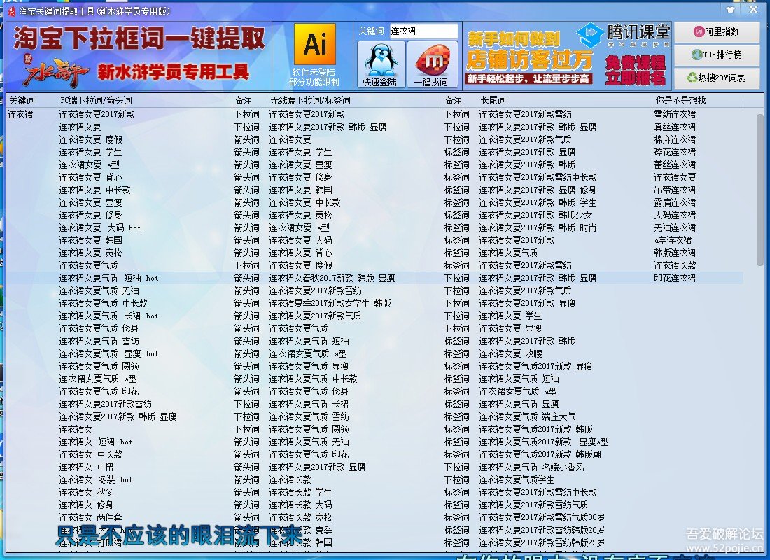 淘宝关键词提取工具是一款免费的淘宝下拉框,这里是新水浒学员专用版工具,亲测非常不错,可以免登陆使用,登陆后可以免费使用任何功能,对于大家提取淘宝PC端和移动端的下拉词非常方便,从而让大家轻松掌握近期热门的东西。