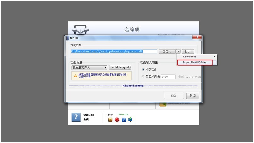 第一步:打开名编辑电子杂志大师,导入您想编辑的PDF杂志文件(进行导入设置,需要等待一段时间才能完成导入);