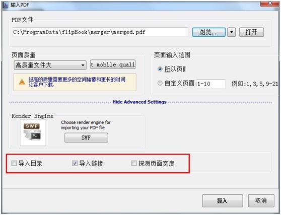 2.在“PDF”选项中选择勾,然后导入你想导入到PDF文件。