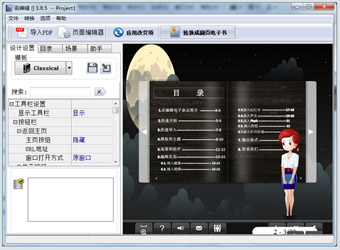 您可以设置任何您喜欢的背景图片,设置单纯的颜色背景或者渐变色背景。如果您觉得图片背景不够绚丽,您还可以用flash动态背景。名编辑电子杂志大师提供了许多免费的场景,同时也可以导入您自己的flash文件作为背景。