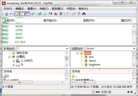 下载安装完成后,运行FileZilla,然后输入服务器的用户名和密码,接下来方式和步骤和浏览器步骤差不多,非常简单我就不一一列举了。