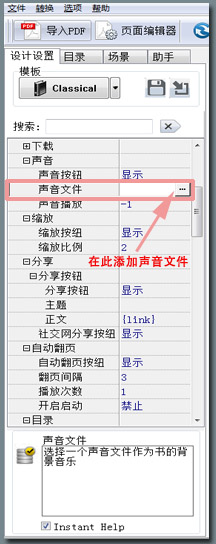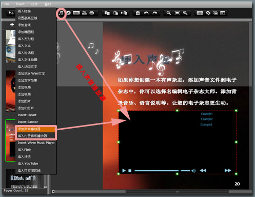 使用名编辑电子杂志,很简单的就可以在flash杂志中添加音乐。