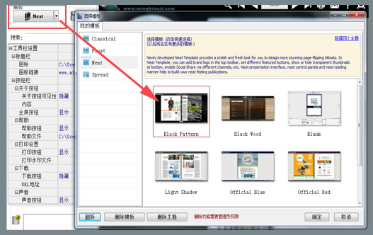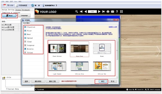 (5)、设置Flash的展示(包括翻页书厚度、工具条颜色,背景色、翻页方向等)