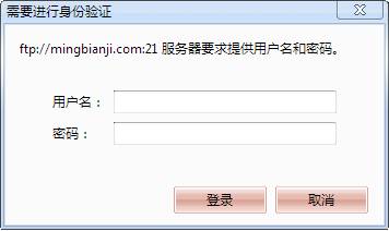 第二步:在地址栏输入ftp://uploads.yourdomain.com (例如 example:example: ftp://mingbianji.com@mingbianji.com),然后按回车键,会弹出一个登陆界面。
