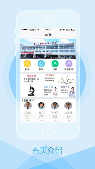 苏大附壹手机APP是一款集医院形象展示(医院新闻系统、专家系统、科室介绍)、预约挂号、检验查询、药物服务价格公示、疾病百科、病友互动等功能与一体的,为患者提供便捷的医疗资讯和就诊服务,是病友的好助手。