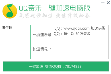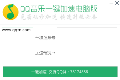 一键加速电脑版是一款登录QQ即可秒加速0.5天的工具。一般使用手机版QQ音乐,需要听歌满60分钟,才能加速0.5天。而使用这款软件直接登录QQ即可秒加速,非常方便。
