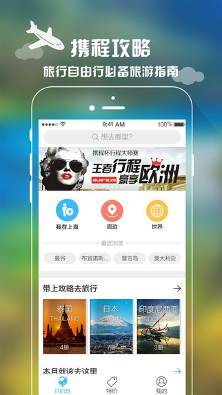 携程攻略app为你打造一个全球旅行攻略宝典,为用户提供旅行决策、信息攻略查看、玩法推荐等内容。你可以在旅行之后,在这里分享你的旅行经历。在旅行过程中,当地的、酒店、当地向导等都是必不可少的。携程攻略为你支招,你在旅行过程中遇到的各种问题,都能帮你解决。