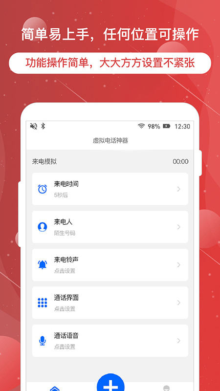 虚拟电话神器app,电话模拟工具,效果真实,轻松设置电话录音、来电时间、来电信息等内容,操作简单,解决用户脱身问题,方便又有趣。