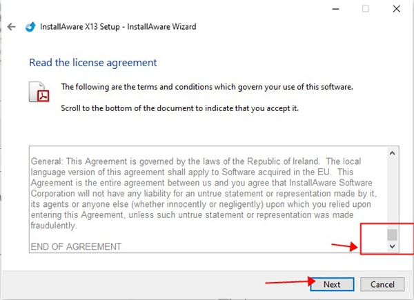 4、阅读许可协议,将滑块滑到最底,点击next。