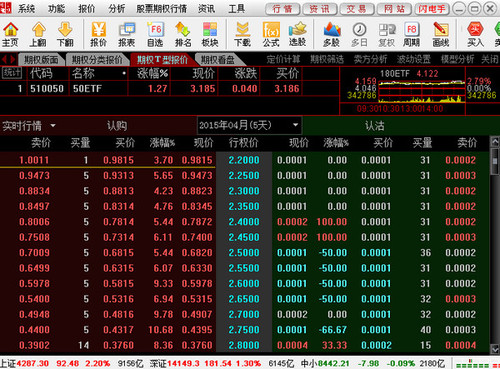 ▲ 组合窗口上右键点击,在弹出的菜单中选择闪电买入\闪电卖出,在盘口的交易价格上点击右键,在弹出窗口上选择闪电买入,或者闪电卖出: