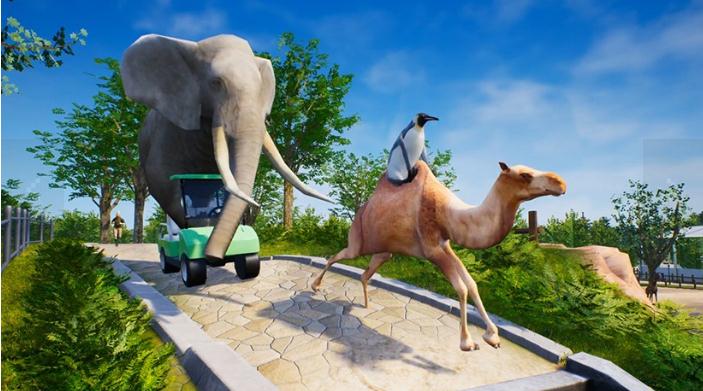 整个游戏非常沙雕,你经常能看到猩猩冲进厕所拆掉马桶,企鹅开着游览车横冲直撞,猴子用起重机把大象吊起来...当然充满想象力的玩家的沙雕程度是无穷大的,你想怎么玩随你的便,只是那画面太美我不敢看。