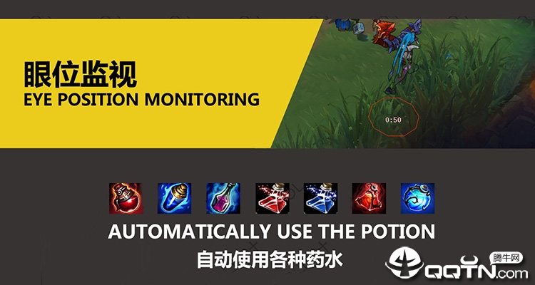 基本功能:自动补兵、惩戒、引燃、敌人眼睛、蘑菇,只要在迷雾外,全部都可以看到。显示技能范围,防御塔范围,技能冷却等64项功能