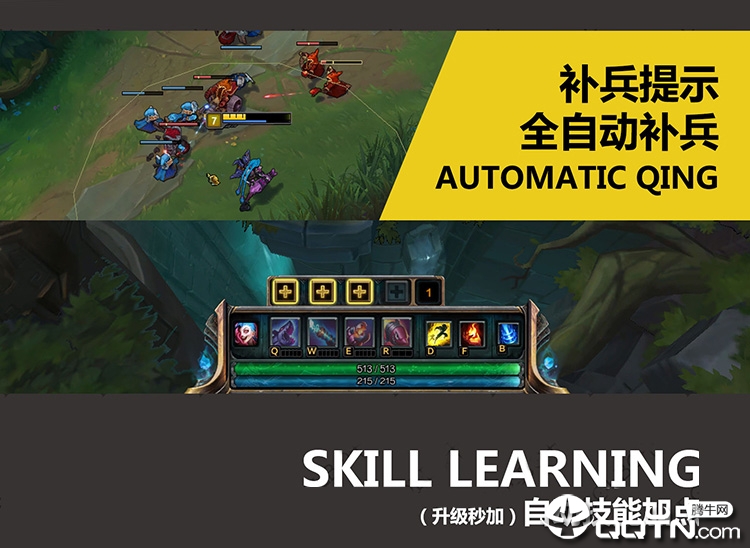 ★自动补兵★:只能极速三伤害,在对小兵进行最后一级时改编血条颜色,提高你的补刀技术!(按住ALT可以自动补兵)