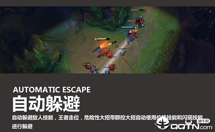 ★自动躲避技能★:自动判断敌人技能方向,并且走位躲避让你不再受到伤害支持躲避大部分技能