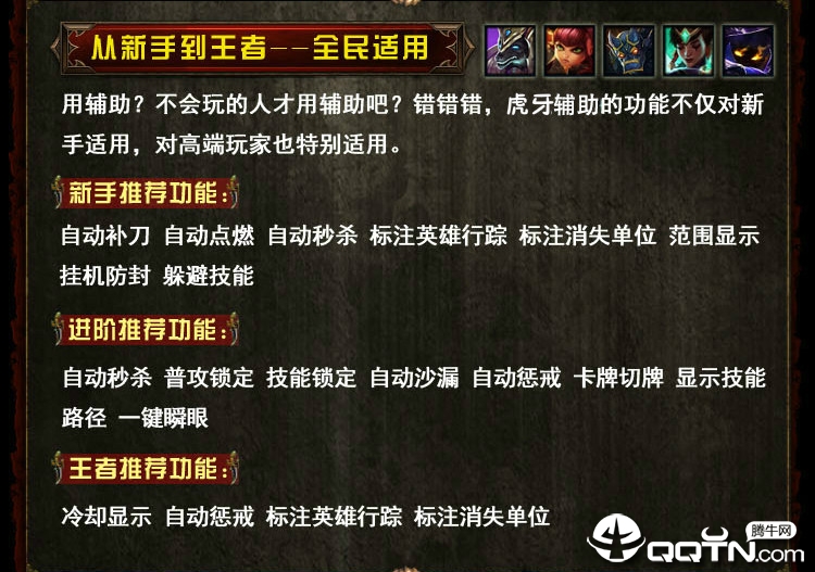 自动识别英雄:精简大量不代码,减小LOL虎牙插件体积,优化程序速度,使得LOL差价更加轻巧好用。
