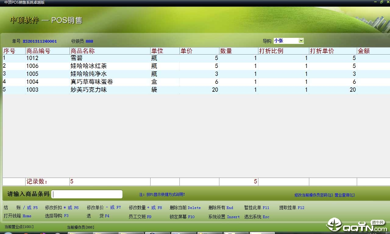 (1) 增加商品默认数量为1,可通过快捷键‘+’或‘-’来快速增加或减少消费数量;
