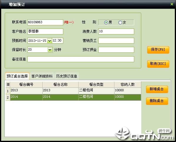 3. 登记预订信息时,如果是老客户,会显示出客户的详细资料,以及预订信息。