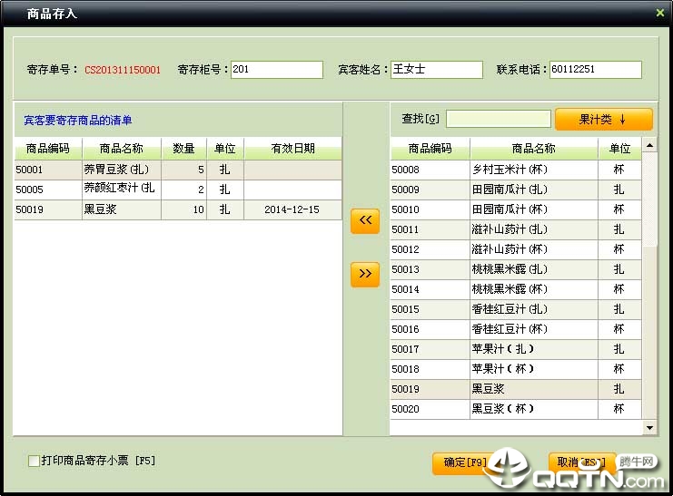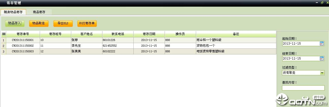支持对客户随身物品的寄存 和 对商品的寄存。