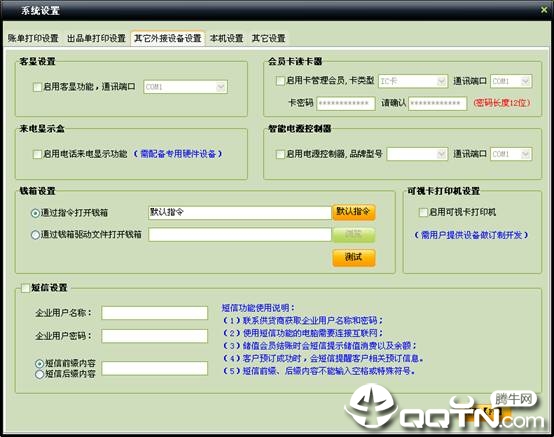 (2)会员卡读卡器:如果是接触式IC卡或感应式M1卡需要在此设置启用,其它磁条卡或ID卡不需要设置