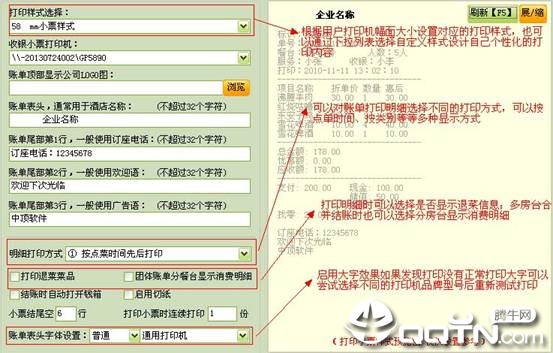 1. 账单打印设置:支持小票打印模式和打印模式两种,支持客户对小票显示内容的自设计功能;