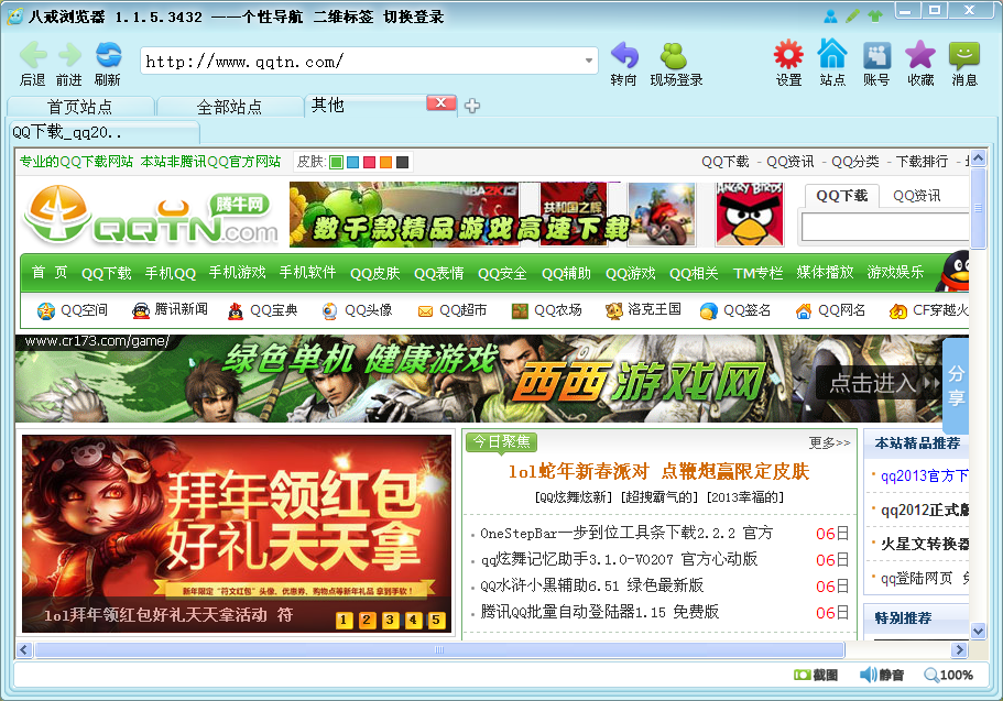 八戒2013年最新更新,公测版正式发布,独有二级标签功能、拥有智能的帐号管理功能、独特的现场登录功能、安全的帐号备份功能,高速上网、功能独特,尽在八戒浏览器。