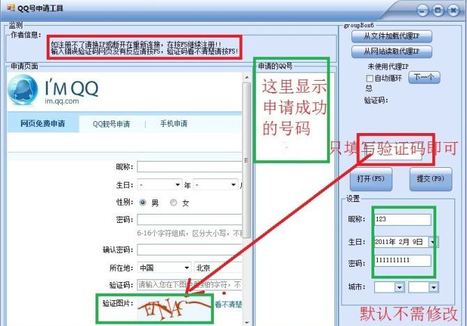 5:申请成功的号码和密码会自动保存到QQlog.txt,