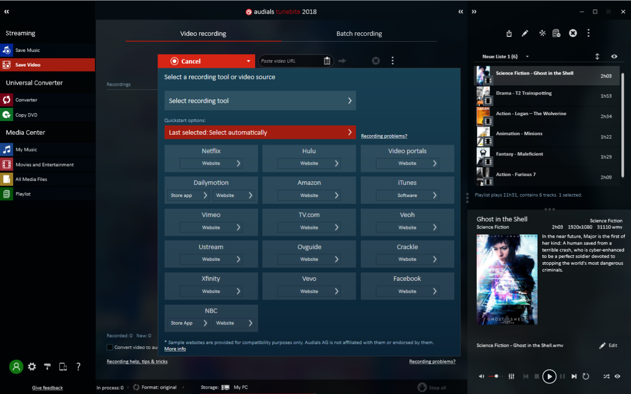 Audials Tunebite从流媒体服务录制音乐和电影。 复制DVD。 所有媒体始终以PC,智能手机和平板电脑的正确文件格式存在。通过Audial Tunebite Platinum,您可以录制所有音乐服务的受保护音乐流以及网站的音频流。 音乐曲目被单独分开,并保存为MP3文件,所有ID3标签都没有。 Audials Tunebite Platinum还从线上媒体库和所有高质量视频流中记录了电影和电视剧的受保护流。 录制内容可以保存为PC,智能手机或平板电脑的任何所需格式,并包含所有电影标签。