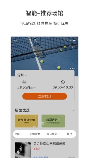 1、智能推荐场馆:空场筛选,精准推荐,特价;