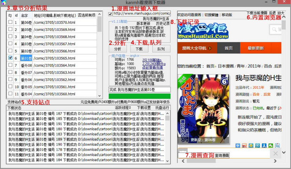 kanmh看漫画下载器是一款自动分析漫画网站下载漫画的免费工具。将支持的漫画网站漫画目录页面地址或内容页地址输入到漫画下载器分析框里,经过地址分析,即可自动下载漫画章节的所有漫画页面图片到电脑本地。kanmh看漫画下载器附带部分漫画网站反和谐,在支持的漫画网站站点快速查询,下载记录等便捷功能。漫画下载后可电脑观看,也可传送至手机进行阅读,避免了漫画网站缓冲慢,无网络无法阅读的缺点。