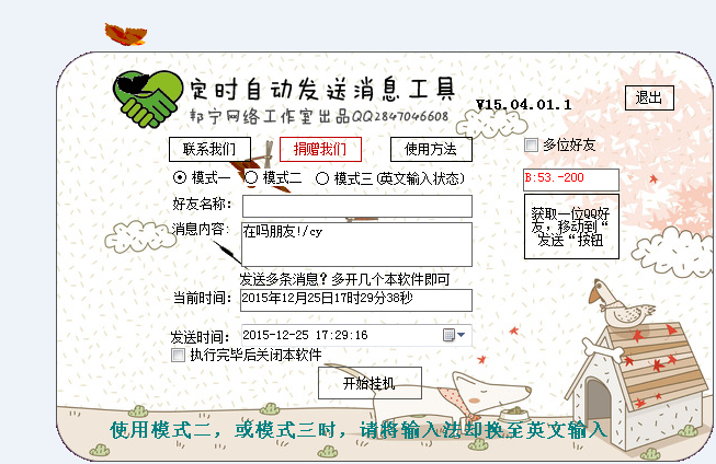 邦宁网络工作室QQ定时消息发送v15.04.01.1 更新: