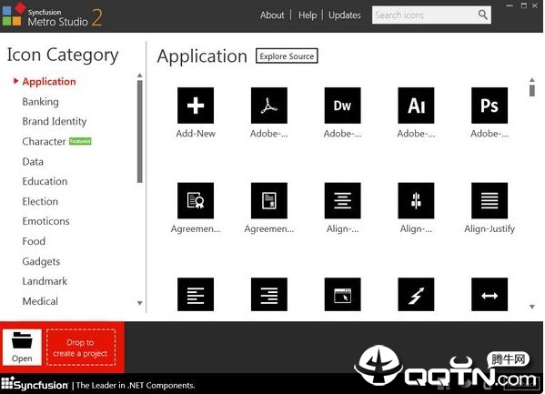 1.Metro Studio官方版内置2500+图标ico,png资源的制作工具,能任意编辑改变图标的大小,形态,背景色,前景色。