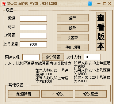 2016年最新的绿豆网页yy协议工具免费上线了,能够让大家不用小号就能够登录任何指定频道协议、让大家快速刷花,刷钻,好用,不会掉号、简单多开。