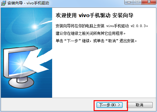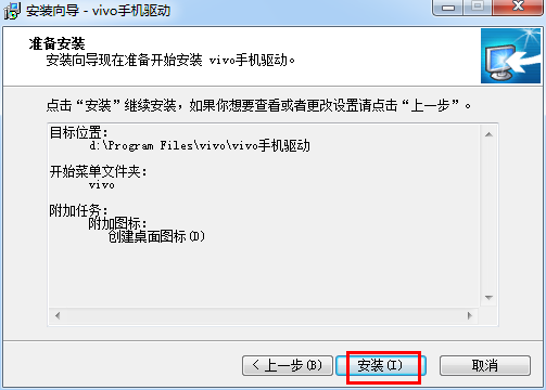 安装向导现在准备开始安装 vivo手机驱动。