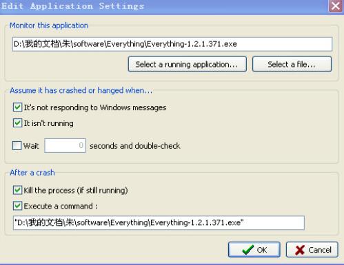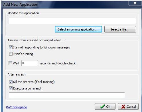 Restart on Crash 是一款用来监视程序运行正常与否的工具,当程序由于各种原因造成崩溃、没有响应、或者自动关闭后,Restart on Crash 会帮你自动重启它。