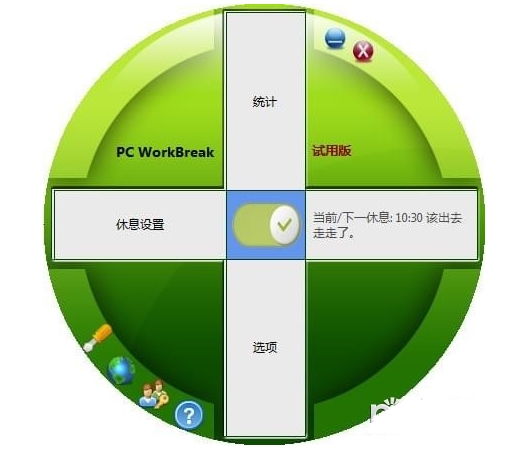 PC WorkBreak是一款休息提醒软件,它可以根据您使用计算机的习惯为您提供以下多种休息提醒:微休息、舒展身体、眼保健操以及散步,此外还可查看休息完成情况及达标率。