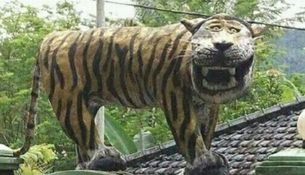 然而,印尼军方本周一捣毁了一座雕塑,因为这是一只表情夸张的搞笑老虎。