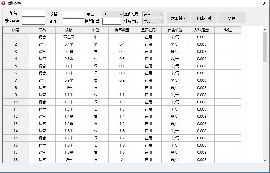 6、客户租赁明细统计:对每个客户或全部客户的租赁明细进行统计,生成租金结算表格,了解客户租还情况,如各种规格钢管的租、还和结余件数。