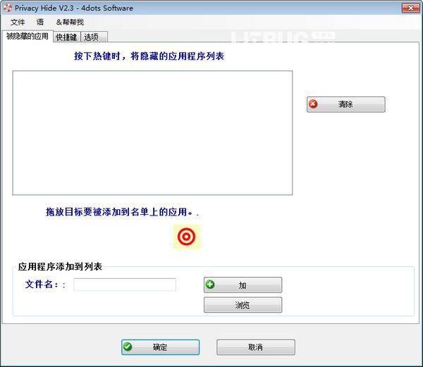 只需将目标图像拖放到应用程序的窗口中,它将被添加到将通过热键隐藏的应用程序列表中。