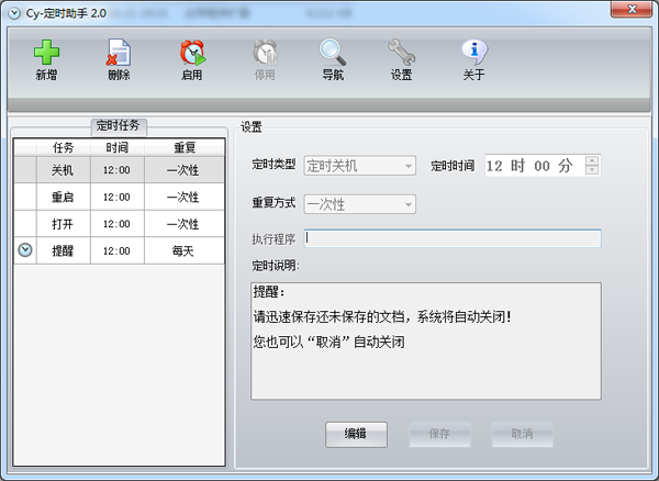 Cy定时助手是一款自用非常省心的免费定时小工具,支持定时关机、定时重启、定时提醒,以及定时打开指定exe程序等功能
